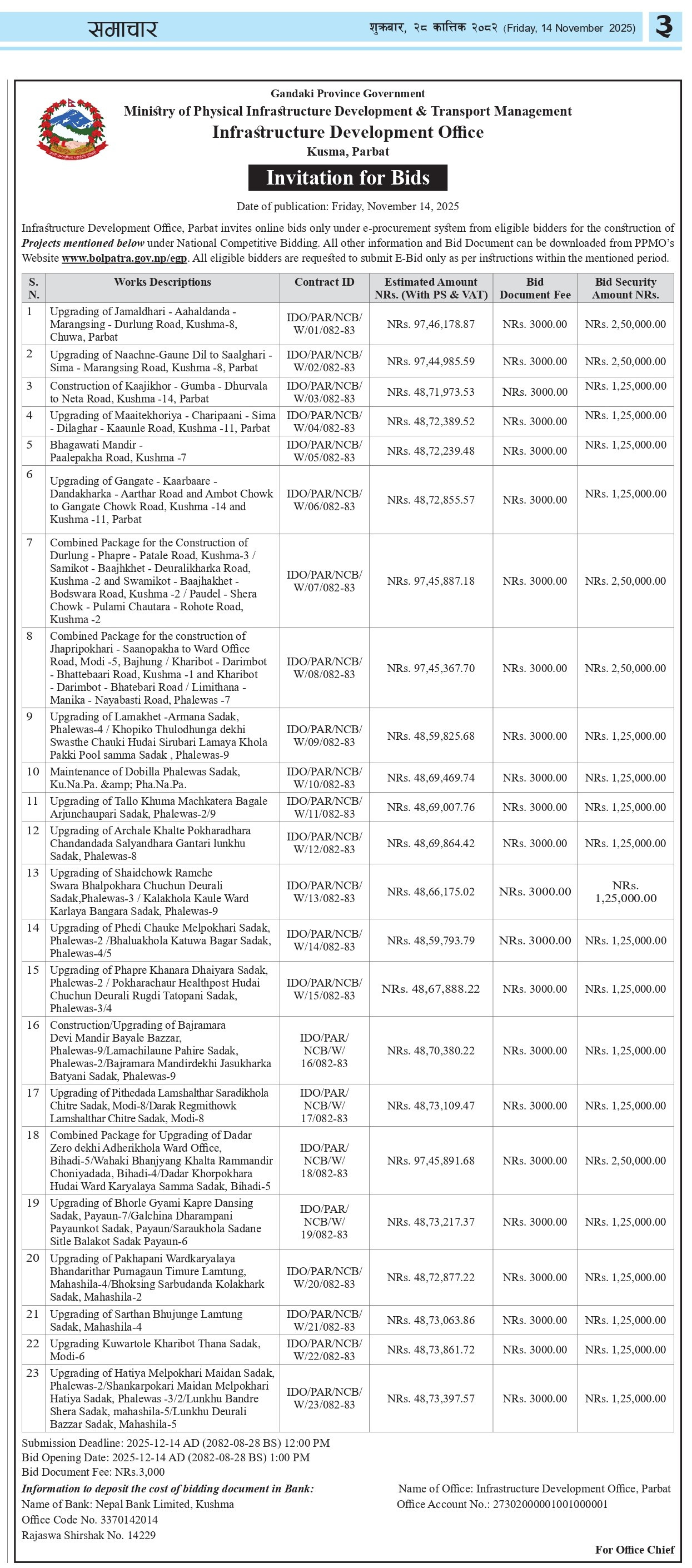 सडक तथा पुल आयोजनाको सम्भाव्यता अध्ययनगुनासो सुन्ने कर्मचारी : सन्तोष अर्याल |