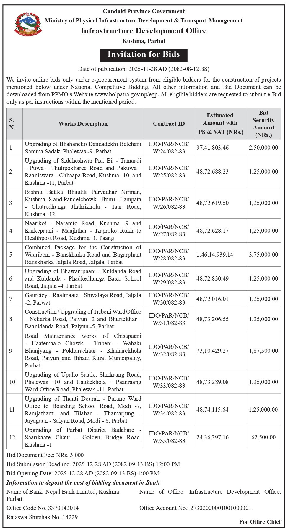 © सर्वाधिकार सुरक्षित पूर्वाधार विकास कार्यालय, पर्वत