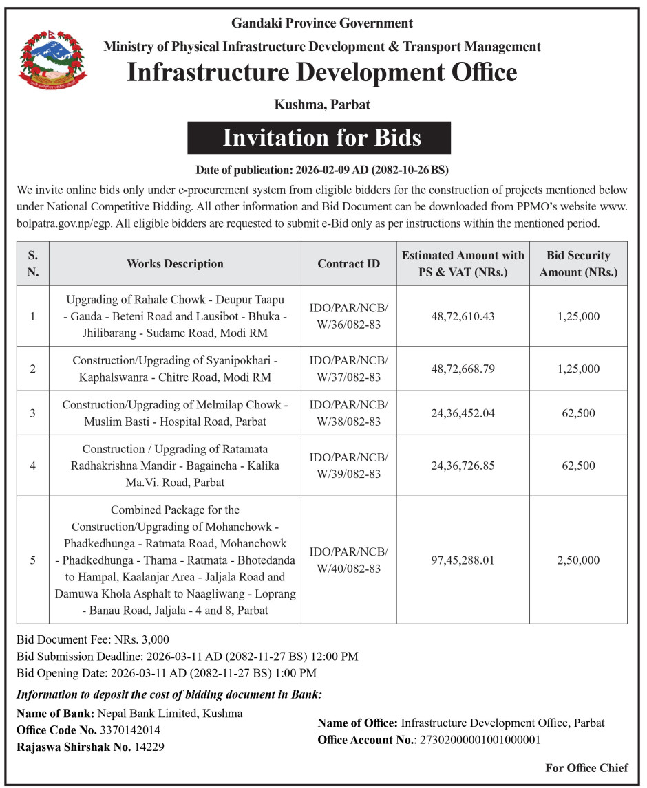 © सर्वाधिकार सुरक्षित पूर्वाधार विकास कार्यालय, पर्वत