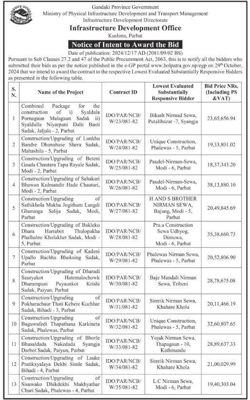 © सर्वाधिकार सुरक्षित पूर्वाधार विकास कार्यालय, पर्वत