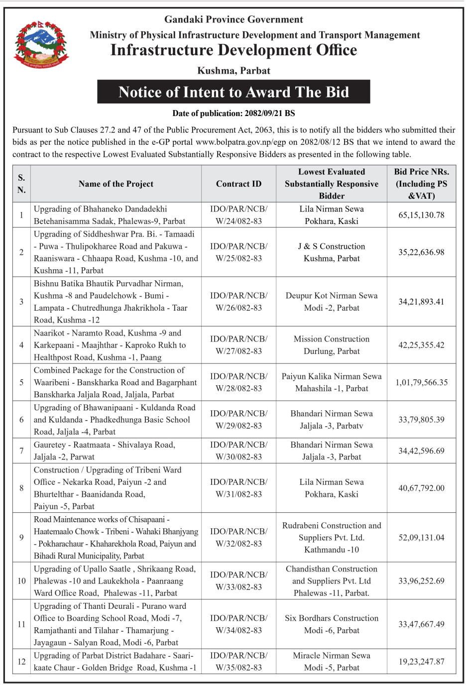© सर्वाधिकार सुरक्षित पूर्वाधार विकास कार्यालय, पर्वत